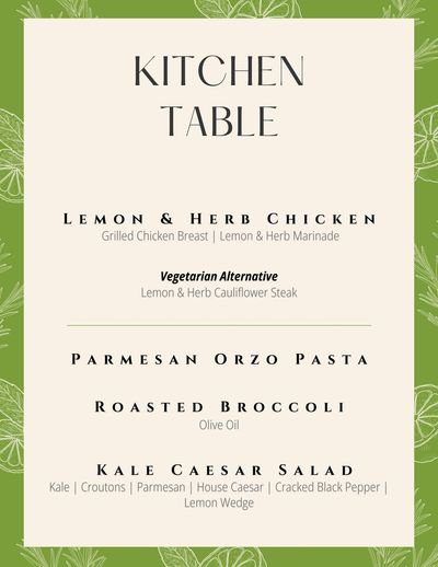 Here are the reheating instructions/guidelines for this week, but if you are kitchen savy, feel free to reheat/prepare them however you prefer...if not, then please read further for directions. Always reheat items until they reach an internal temperature of 165 degrees for safe food temps/service.